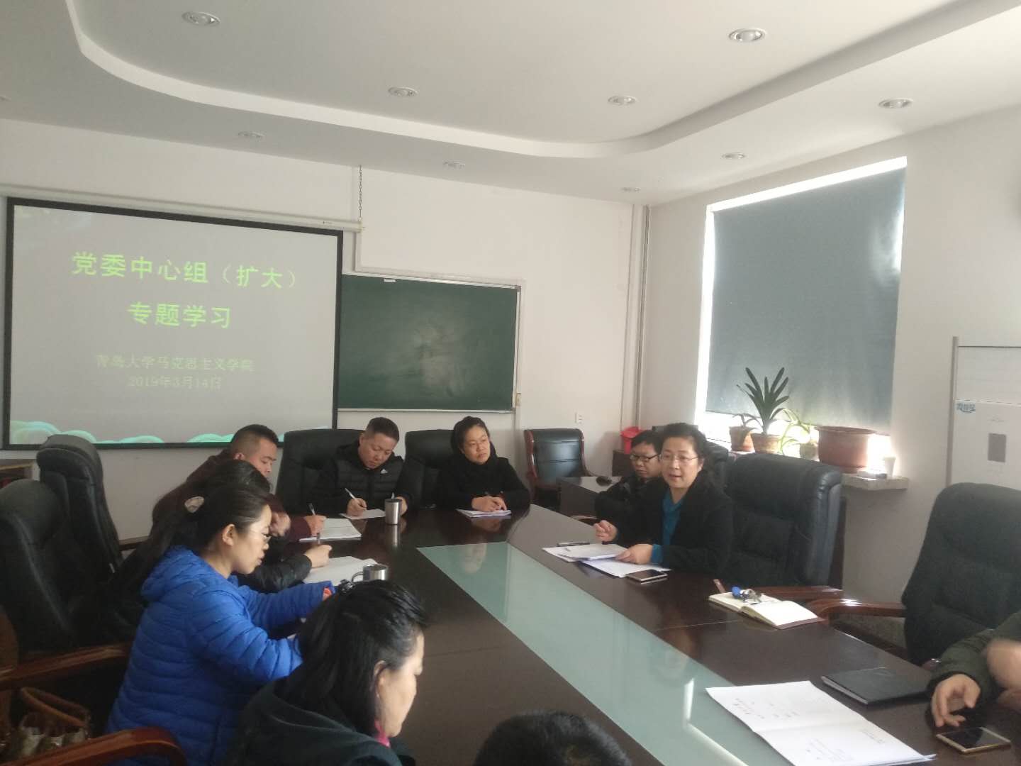 党委理论学习中心组(扩大)专题学习在笃行楼211进行。院党委书记赵茗主持学习,院领导班子成员尉利工、郭金鸿、姜文明及教研系部主任、支部书记、两办主任参加学习会。