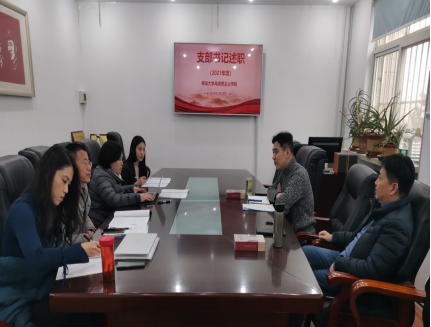 2021年度党支部书记述职评议会在笃行楼213会议室召开,会议由院党委书记王传永主持,党委副书记姜淮和各党支部书记参加会议。
