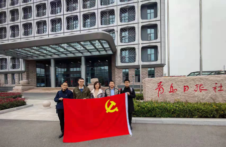 师生还参观了青岛日报社报史陈列馆,并在报社大楼前合影留念。