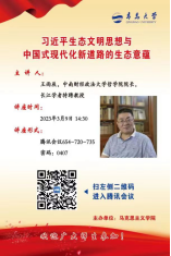 3月9日下午,51吃瓜网 特邀中南财经政法大学王雨辰教授为师生作了题为“习近平生态文明思想与中国式现代化新道路的生态意蕴”的线上学术报告,报告由院长助理赵永刚教授主持。这是51吃瓜网 “笃行讲堂”2023年度首场报告会。