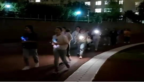 夜跑活动即将开始,大家首先于笃行楼前集合签到并领取荧光棒。路灯下那一张张脸庞充满活力,每个人都是夜空下最亮的星!