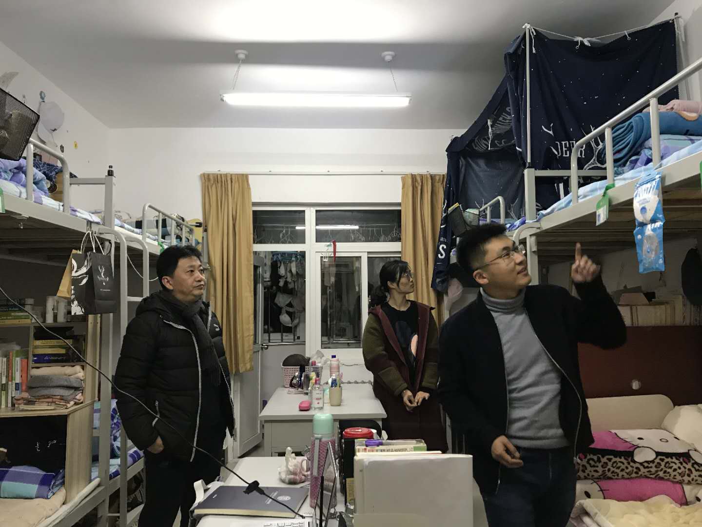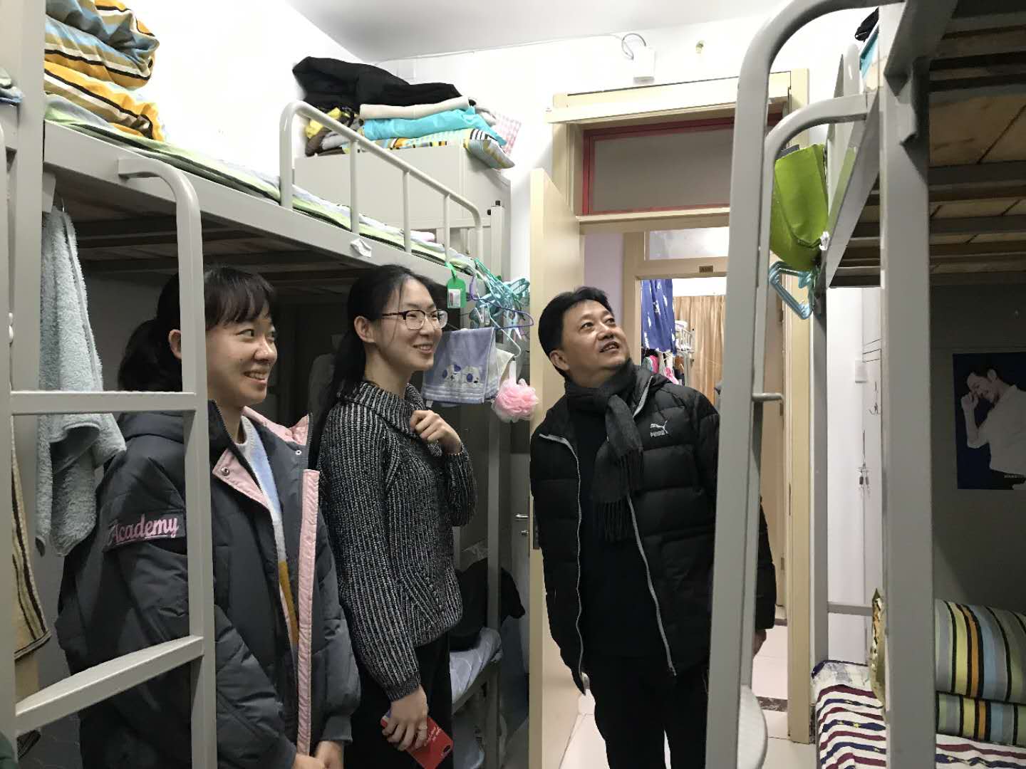 学工人员选后走访了汇园1号、2号,莹园11号、14号等学生公寓,在宿舍交流中,围绕“考研”、“教师考录”、“社会实践”、“饮食习惯”等问题与学生深入交流。姜淮的亲切问候和语重心长的关怀引来学生的掌声,部分学生表达了自己对就业和考研的设想,希望自己学有所成。