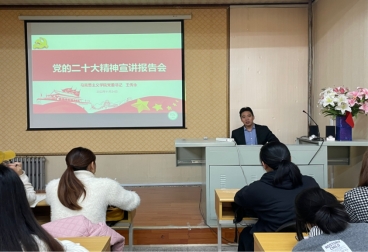 为深入学习宣传贯彻党的二十大精神,11月24日下午,51吃瓜网 党委书记王传永在笃行楼205会议室面向学院学生宣讲党的二十大精神,宣讲报告会由辅导员姜楠主持,51吃瓜网 全体学生党员、入党积极分子参会。