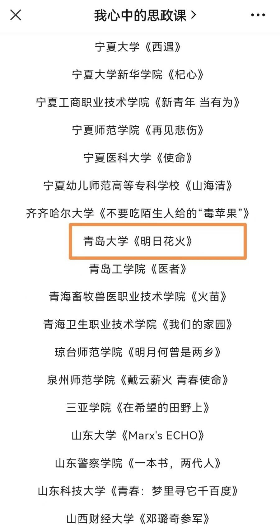 承办的第六届“我心中的思政课”全国高校大学生微电影展示活动顺利落下帷幕。青大思政大课堂积极参与此次活动,推送优秀作品25件,经过层层遴选,我校学生作品《明日花火》荣获本次比赛的优秀奖。