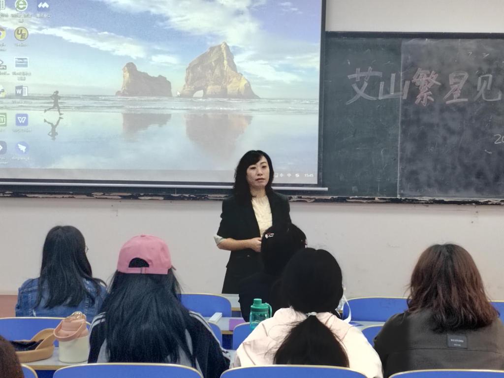随后,艾山天文台官方研学负责人王老师以个人履历为引,鼓舞大学生“走出校园,走进社会”。她讲解了“艾山繁星”研习班下乡调研、项目创立等主要研习任务,以多项艾山天文台乡村振兴产品为例,为同学们进行项目研发提供思路。此外,王老师从三方面对同学们的调研活动提出要求,对把”艾山繁星“研习班建设成一支有纪律,有创新思想,团结有力的队伍展现了信心。