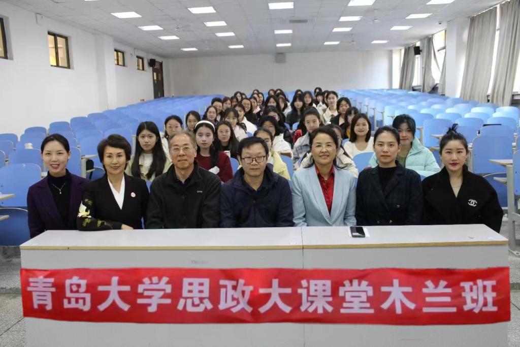 姜文明副院长,思政大课堂中心主任刘正刚老师,木兰班课程组负责人赵洁导师,IPA国际高级礼仪培训师、木兰班她形象板块负责人杨晓斐导师,岛城知名培训导师、优度集团副总裁朱锐导师,美国ACI注册国际高级礼仪培训师、木兰班她形象板块导师佘丽超导师,青岛市礼仪文化交流协会讲师团长、她形象板块导师闫云霏导师,以及木兰班的同学们。