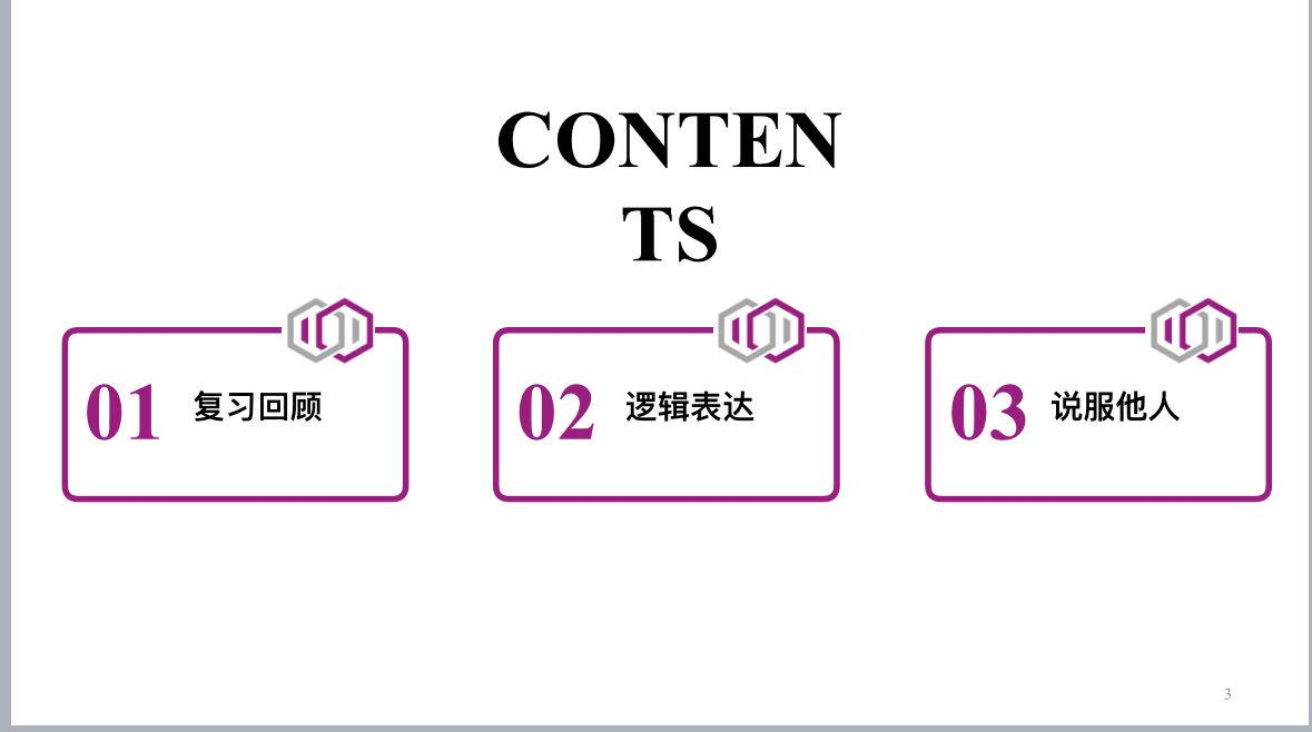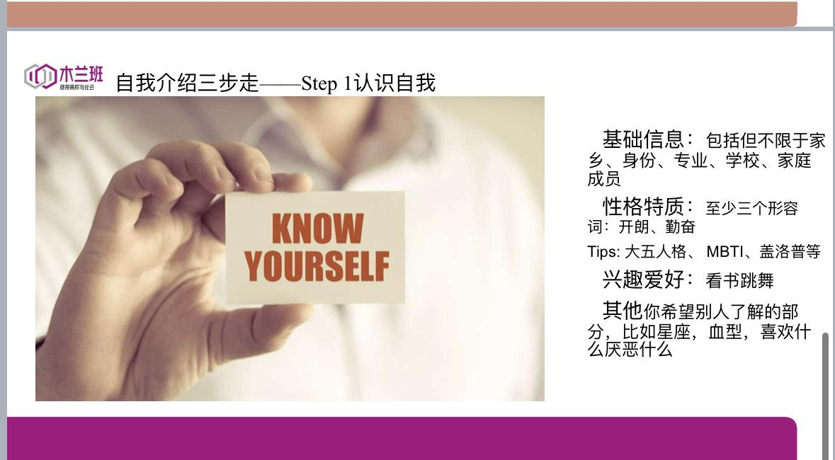 Soya老师带领我们回顾上一节的自我介绍与逻辑结构方面的理论知识, Soya老师介绍了6种逻辑结构,然后给我们介绍了2个非常好用的万能结构——“总分总”和“故事线”并邀请同学们用自己的话去解释各个表达方法,如时间线、空间线等等。Soya老师的热情活泼也带动了全场的气氛,同学们畅所欲言。