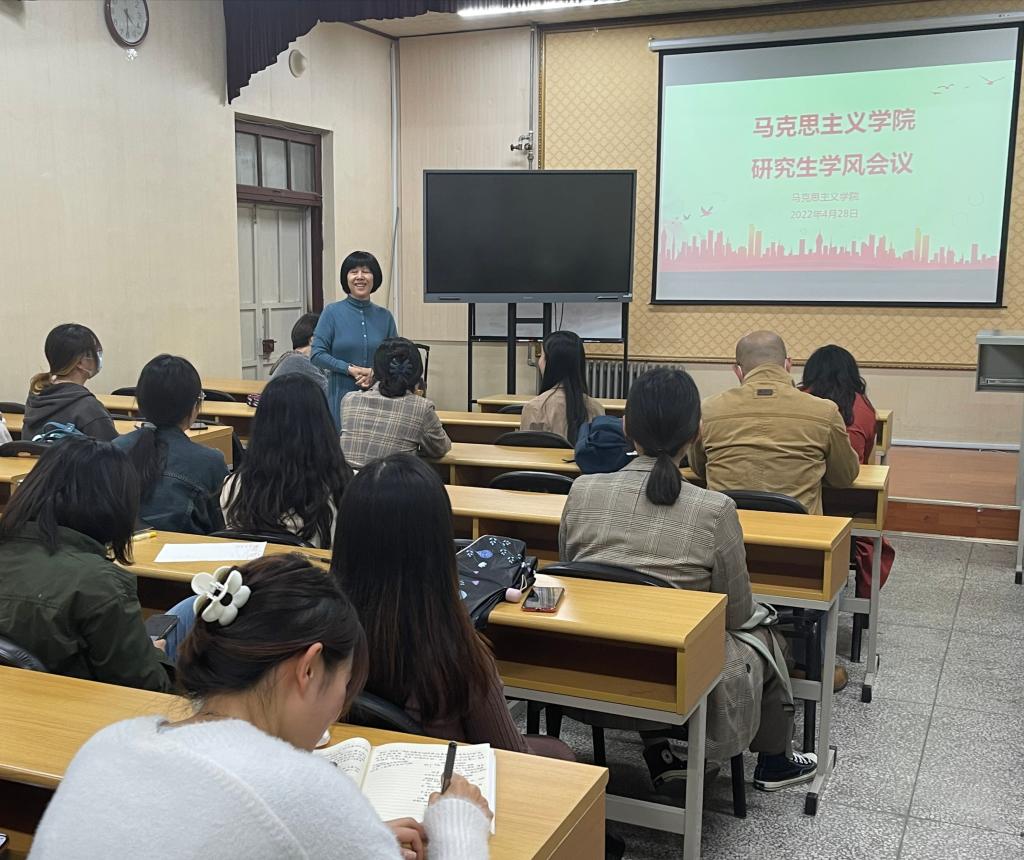 在笃行楼205教室召开“2022年研究生学风建设会议”。副院长郭金鸿教授、各学科带头人谢春玲教授、赵永刚教授、萨日娜副教授、辅导员姜楠及全体研究生参会。会议由学院研究生办公室王翠云老师主持。