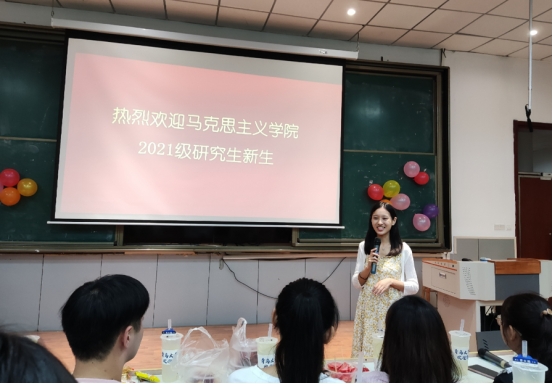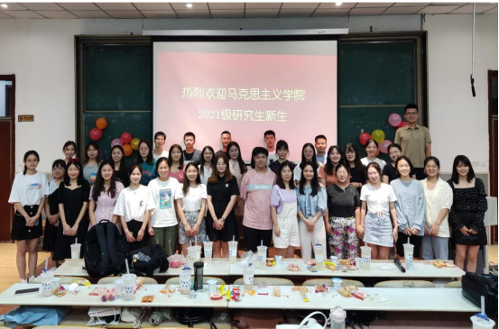 的25名2021级研究生新生致以衷心的祝贺和热烈的欢迎。而后,研究生会主席李璐代表学长学姐进行发言。晚会在21级全体男生的歌声中正式拉开了序幕,410女生宿舍成员带来的《遇见》让整个空气变得宁静而深情;钟含笑同学的魔术表演更是将活动推向高潮;张昭同学热情奔放的歌声再次点燃了同学们的激情;王凤玲同学和曲璇同学带来的《后来》也赢得台下阵阵掌声。在节目进行的过程中,2021级新生依次上台进行自我介绍,增进彼此的了解与感情。最后,学长学姐们为2021级新生答疑解惑,全体拍照留念。