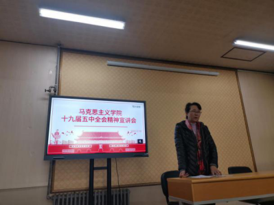 的老师们处在意识形态教育的前沿阵地,更要坚持马克思主义在意识形态的领导地位。随后,曲新英教授就新发展理念谈了自己的理解,她认为包含五个新的组成部分,即新的奋斗目标、文化支撑、价值内核、发展动力及发展事业,并从政治、经济等方面阐释了人民至上理念。最后,谢春玲教授从背景、定位及做法等方面对新发展格局谈了自己的体会。