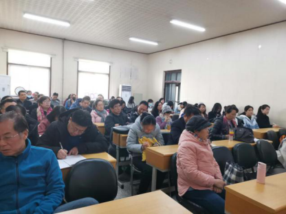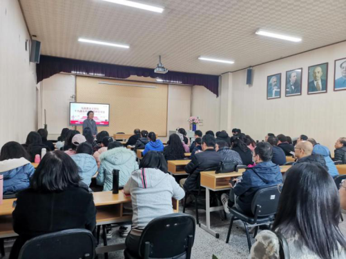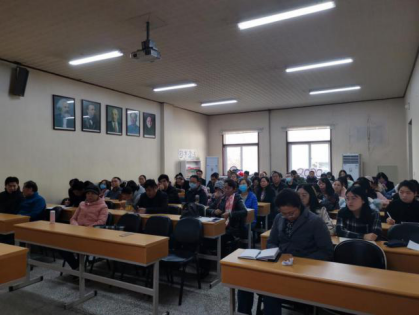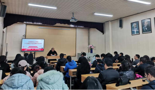 全体教师及学生党员参加学习,会议由学院党委书记赵茗主持,院长尉利工主讲。