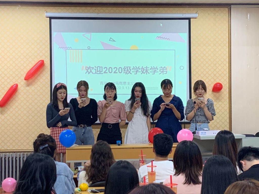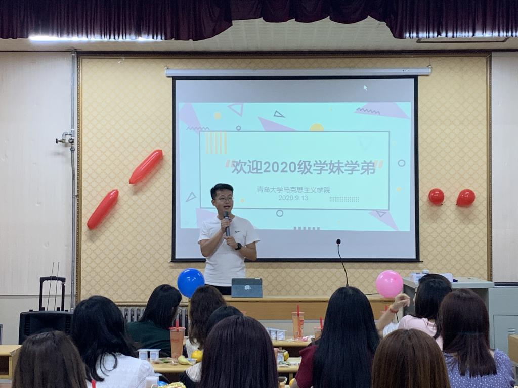 的19名2020级研究生新生致以衷心的祝贺和热烈的欢迎。随后,2020级新生依次上台进行自我介绍,加深彼此的了解。之后,研会主席刘福民、李雅茹同学、302女生宿舍成员、303女生宿舍成员、代文玲同学、李璐同学分别带来了精彩的节目,点燃了大家的热情。最后,在主持人的带领下,同学们进行了击鼓传花游戏,师弟师妹们关于生活和学习方面的困惑都得到了解答,在集体游戏中进一步加深了同学们之间的认识和了解。