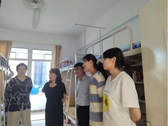 党委书记赵茗、副书记姜淮、系主任张义生、辅导员张妍陪同看望前往。刘彩云与2020级本科新生亲切地交谈,过程中询问了同学们的报到情况、军训情况和对学校环境适应情况。勉励同学们要多读书,读好书,在拼搏奋斗中实现人生价值。