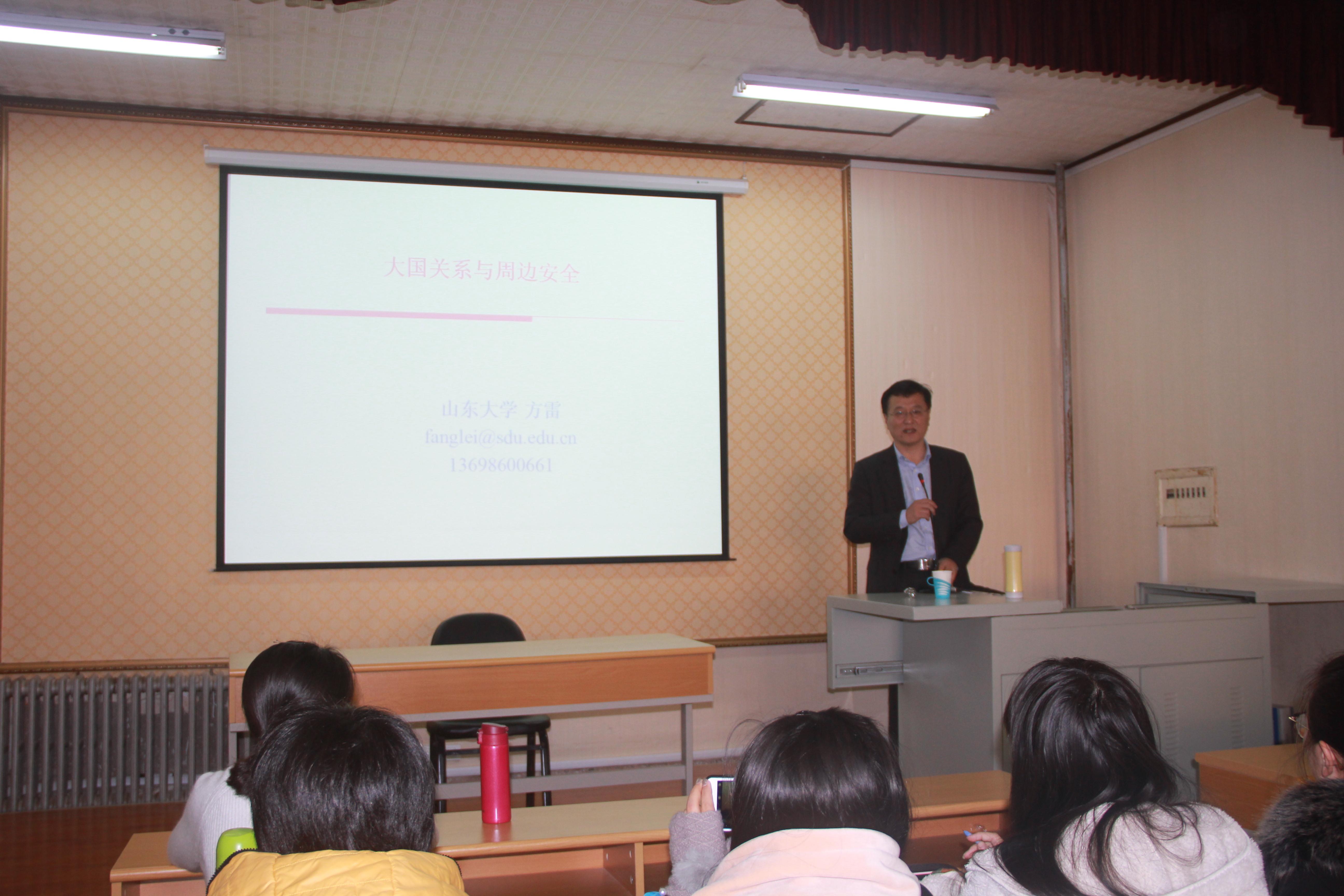 作“大国关系与周边安全”专题讲座。讲座由学院常务副院长丛松日教授主持,学院全体研究生聆听了讲座。
