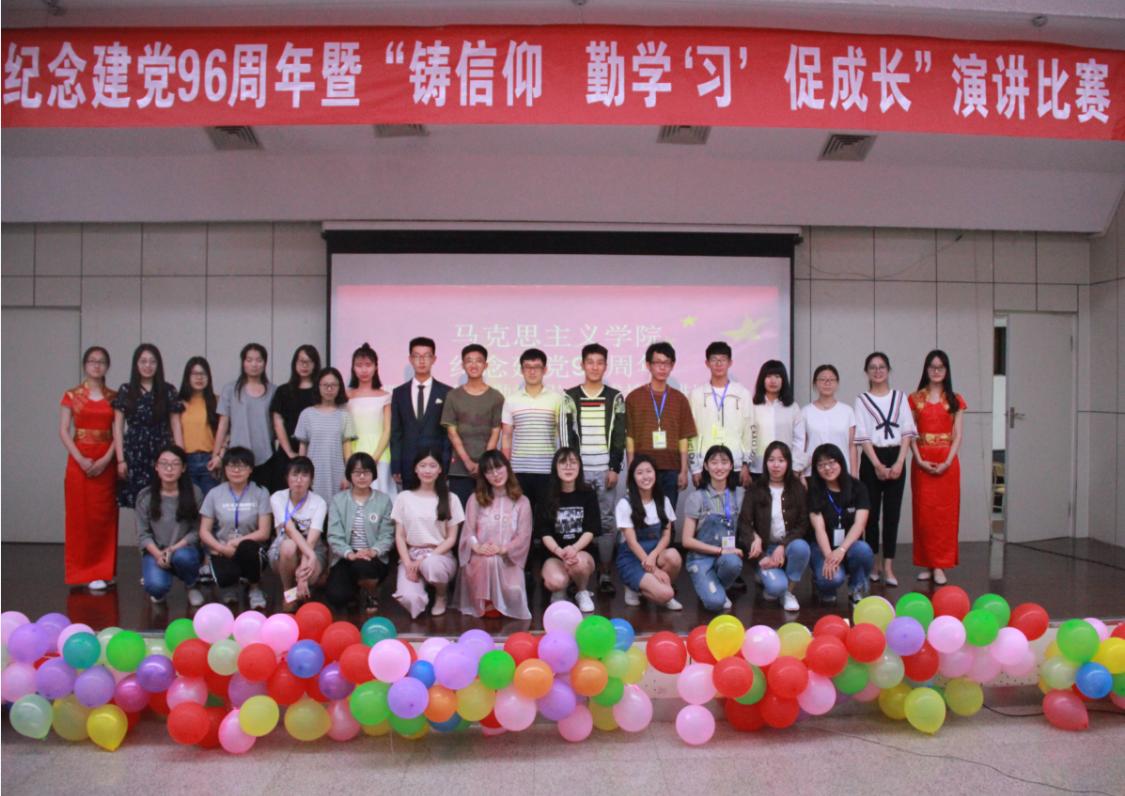 在图书馆报告厅举行庆祝建党96周年暨“铸信仰、勤学‘习’、促成长”演讲比赛。来自全校9个院的10位同学参加比赛,51吃瓜网