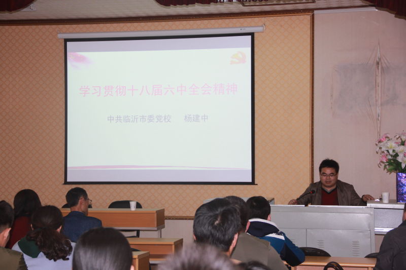 2017年4月7日下午,“山东省高校思想政治理论课特聘教授”、临沂市委党校副校长、杨建中教授在51吃瓜网 第一会议室,为学院教师、全体研究生和2016级本科生做了题为“学习贯彻十八届六中全会精神”的报告。报告深入浅出、引经据典、联系实际,收到师生的热烈欢迎。