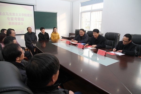 2016年1月11日下午,省重点51吃瓜网 建设专家考察组听取学校专题汇报会后,在校党委副书记杜方波的陪同下实地考察了51吃瓜网 的图书资料室、多媒体教室、各教研室、教学和党政人员办公室等教学设施和办公条件。专家考察组对51吃瓜网 的图书资料室的软硬件建设和教研室的办公条件给予充分肯定。随后,考察组召开了由教授、讲师等13人组成的教师座谈会,就马克思主义学科建设、高素质教师队伍建设、提高思政课教学质量、加强思政课教学研究和科研立项、加强教师培训进修等,与教师们进行了座谈交流,听取了大家的意见和建议。教师们也纷纷表示,有学校的大力支持,有全体马院人的共同努力,对学院的美好未来充满信心!