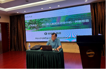 徐俊忠教授作《“人民民主”:何以是人类民主进程中的一种新形态》。他从“人民民主”的发源、何谓“人民”、如何“民主”,深入阐述了人民民主的实质和诉求。他指出,坚持“人民民主”是马克思主义的基本政治立场,认为新中国全面践行与建设的“人民民主”之所以成为人类民主进程中的崭新形态,不仅在于它践行的是一种完全不同于西方建立在资本主义经济基础上的、以不同的政治集团之间的竞争、博弈为特质的旧式民主,还在于它以其实践开创出中国日益风清气爽的政治局面,创造出中华民族伟大复兴的欣欣向荣的局面。