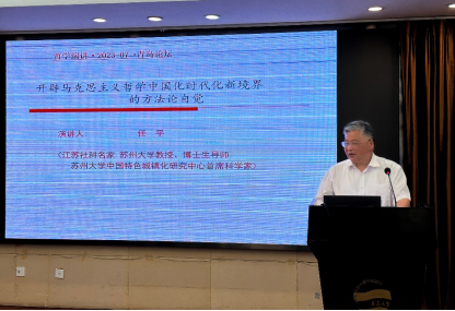 苏州大学政治与公共管理学院任平教授作《开辟马克思主义哲学中国化时代化新境界的方法论自觉》。任平从出场语境:中华民族伟大复兴战略全局与全球大变局、方法论自觉:当代中国马克思主义哲学创新范式图谱、出场途径:构建中国马克思主义哲学的内在逻辑三个部分展开。他指出,“中国马克思主义哲学”是从“世界走向中国”到“中国走向世界”这一时代大转换的产物,是“中国走向世界”的时代背景下,中国学术走向世界的一面旗帜,反思“中国马克思主义哲学”何以可能出场,研究“中国马克思主义哲学”的当代出场路径,具有重要意义。