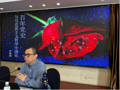中国社会科学院哲学研究所单继刚教授作《百年党史与马克思主义哲学中国化》。他以马克思主义哲学中国化历史上的重要事件、重要时间节点为主轴,详细分析了马克思主义哲学中国化能够成功的原因。结合习近平总书记提出的七一讲话提出的“两个结合”,单继刚认为中国特色社会主义进入新时代,马克思主义哲学迎来了前所未有的发展机遇,希望马克思主义理论工作者把党史学习与学科史、学术史、话语史的研究结合起来,实现理论和实践的双重突破。