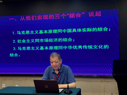 山东大学哲学与社会发展学院何中华教授作《马克思与孔夫子:一个跨时空的相遇》。他认为,马克思主义与儒学存在内在契合性。针对马克思主义与儒学的关系问题,通过从我们实现的“三个结合”说起、马克思主义与中国传统文化相遇的必然性、马克思主义与中国文化的相遇、马克思主义基本原理与中华优秀传统文化结合的学理依据四个方面层层递进做了深入阐发,多维度揭示马克思与儒学相遇的内在可能性及其学理依据,帮助大家更深层次地理解马克思主义中国化的实质。