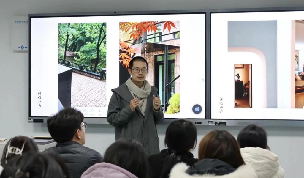 之后,浄悦山房主理人、研习班指导老师曲智挺老师为我们介绍了他与茶文化的渊源,阐发了茶文化的魅力与传承性。并向我们介绍了浄悦山房的设计结构、视觉审美设计以及深深蕴含的中华传统之美,让同学们直观感受到了中华茶文化的古风古韵与当今时代理念的完美融合。