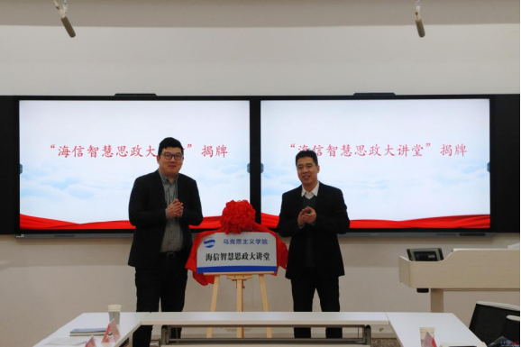 的人才培养及学科建设工作,海信商用显示股份有限公司向学院捐赠总价值11万元的智慧教室设备一套,并组织开展了工程施工。当前,各项施工已完成,“海信智慧思政大讲堂”正式投入使用。