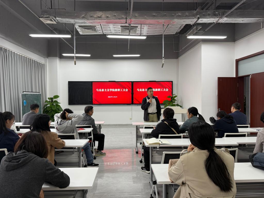 在文化艺术综合楼A座306会议室召开全体教职工大会暨政治理论学习会,学院党政领导班子和全体教职工参加,会议由学院党委书记王传永主持。