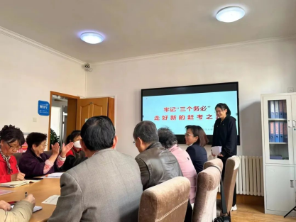 “笃行”宣讲团成员、2021级马克思主义中国化研究专业硕士研究生许文丽前往观海山社区为社区各党支部书记进行理论宣讲。许文丽以《牢记“三个务必”,走好新的赶考之路》为题,结合历史事件生动地讲解了“三个务必”提出的时代背景、阐明中国共产党以自我革命引领社会革命,不负时代、不负人民,用新的伟大奋斗创造新的伟业的深刻内涵。