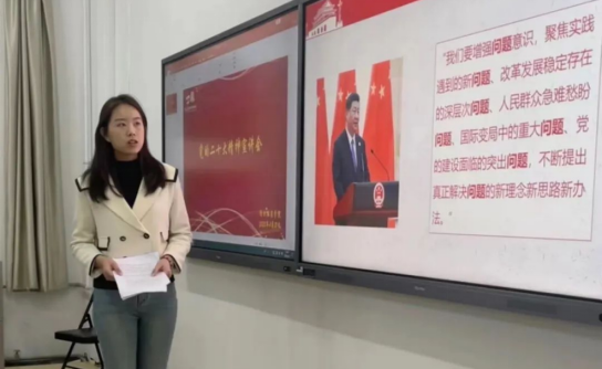 “笃行”宣讲团成员、2022级思想政治教育专业硕士研究生李佳怡和黄绪涛在东十二教105和207教室为纺织服装学院学生开展党的二十大精神宣讲活动。李佳怡以《坚定文化自信,践行文化担当》为题,结合视频与案例,从文化自信的理论内涵、文化自信的底气来源、为何要坚定文化自信以及如何坚定文化自信四个方面展开宣讲。接下来,黄绪涛通过带领大家回顾“六个必须坚持”的深刻内涵,并以其中的《必须坚持问题导向》为题,结合新时代的发展实践、中国共产党的生动历史以及习近平新时代中国特色社会主义思想的发展脉络,阐述“必须坚持问题导向”这一思想的深刻内涵、发展历程、现实支撑以及对于新时代青年的现实启示。