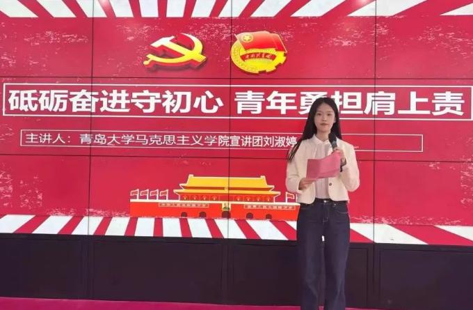 “笃行”宣讲团成员2023级研究生刘淑婷、王童琳走进青岛第六十七中学开展理论宣讲活动。