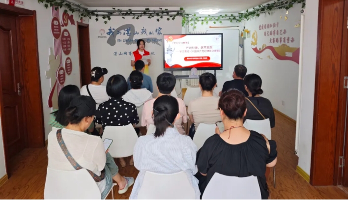 “青春向党,志愿同行”笃行宣讲团成员在新湛二路九号网格学院为社区党员、工作人员作“党纪学习教育”主题宣讲,刘佳岳、陈颖雪对《中国共产党纪律处分条例》中新增或修改的重点条文进行解读。倡导每名共产党员更加严格地遵守党的纪律,做党的纪律的遵守者、捍卫者;时刻谨记面对新时代新阶段新要求,全体党员应严格执行党规党纪、模范遵守法律法规,充分发扬组织严密、纪律严明的优良传统和政治优势,凝聚起完成历史伟业的磅礴力量。
