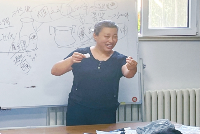 笃行宣讲团的成员于8月12日赴青岛市市南区湛山街道盐城路社区协助开展系列以“非遗传承之掐丝珐琅制作”为主题的暑期社会实践活动。